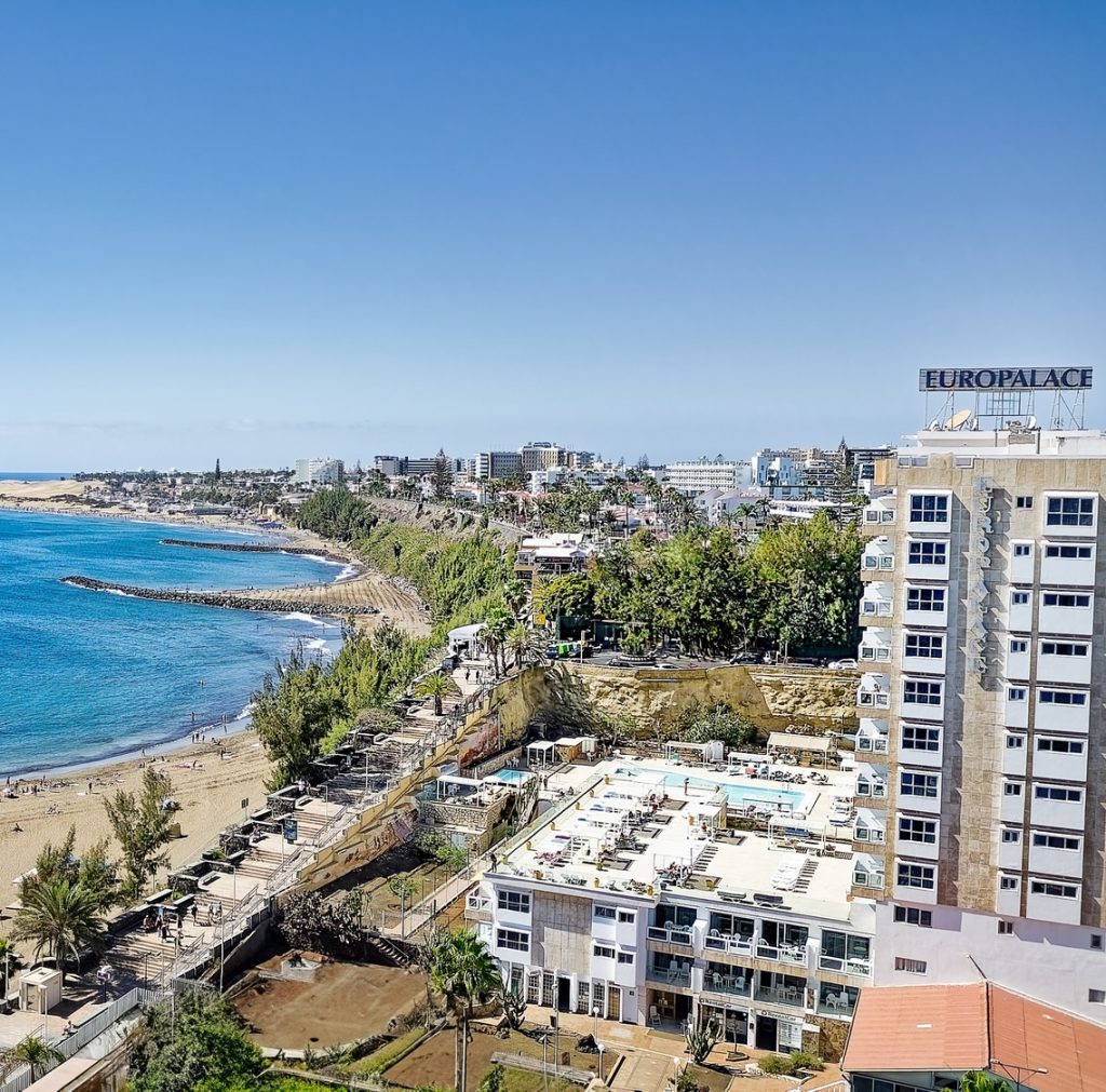 El Hotel Europalace es un hotel de 3 estrellas superior situado en primera línea de la Playa del Inglés, en Gran Canaria. Cuenta con unas vistas excepcionales del océano Atlántico y se encuentra a pocos minutos de las Dunas de Maspalomas.