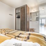 JUNIOR -SUITE SUPERIOR Individual (Vista al Mar): 3º al 6° piso (aproximadamente 46 metros cuadrados), 1 habitación con dos camas o cama de matrimonio (bajo disponibilidad), ventilador de techo, caja fuerte (alquiler). Baño con sus complementos (ducha), secador de pelo, espejo de maquillaje. Sala de estar con sofá cama. (Kitchenette equipada con refrigerador 0.85m2 x 0.50m2, 2 placas eléctricas y menaje de cocina), teléfono, TV-PLANA vía satélite, balcón con vistas al mar. WIFI gratuito en todo el hotel.