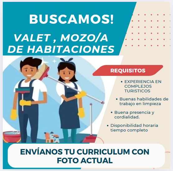 Se busca mozo de habitaciones/valet para Hotel en Playa del Inglés buscamos incorporar a personal para el puesto de mozo de habitaciones o valet.